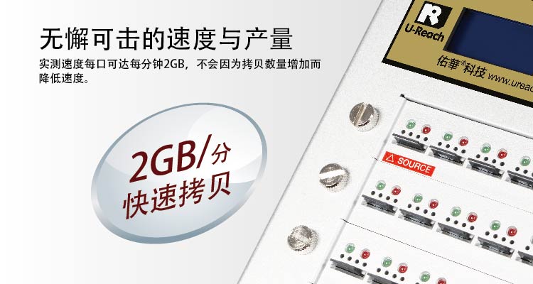 實(shí)測(cè)速度每口可達(dá)2gb/分,不拖速,最多可支持119張閃存卡同時(shí)拷貝