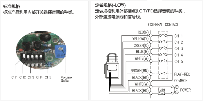 ws-警告音 5音 wp-特殊警告音 5音 wm-音樂音 5音 wa-警報音 5音 wv-聲音信號 3頻道 |