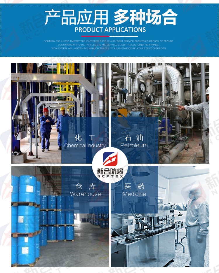石油、化工、軍隊(duì)、油庫(kù)、電廠、精密車間、分析室、調(diào)漆房、危險(xiǎn)品倉(cāng)庫(kù)、海洋石油平臺(tái),氫氣等易燃、易爆環(huán)境的制冷和制熱,新合防爆空調(diào)的外觀和普通空調(diào)有區(qū)別,但用法與普通空調(diào)一樣。