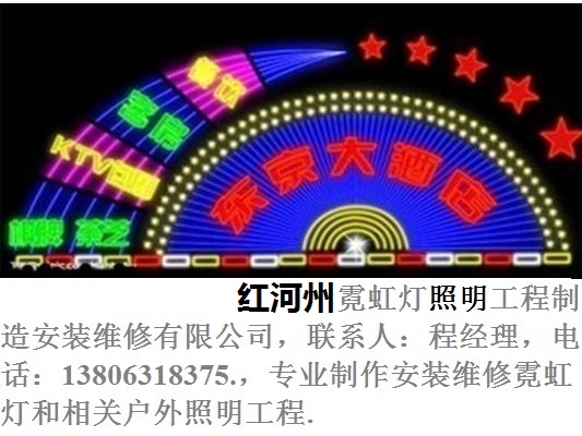紅河州霓虹燈照明工程制造安 裝維修有限公司,聯(lián)系人:程經(jīng)理,專業(yè)制作安 裝維修霓虹燈和相關(guān)戶外照明工程,價(jià)格:750元/平方米,保修三個(gè)月,終身維護(hù),(誠征全國代理商),專業(yè)從事商業(yè)門面,招牌、街道景觀的整體設(shè)計(jì)。設(shè)計(jì)制作安 裝噴繪廣告 牌,燈箱,led燈飾,霓虹燈,電子顯示屏,單立柱,樓體光亮工程等等,是戶外視頻專業(yè)制作安 裝公司。,, 紅河州霓虹燈照明工程制造安 裝維修有限公司在威海市區(qū),文登區(qū),榮成市,乳山市及煙臺(tái)芝罘、福山、牟平、萊山4個(gè)區(qū)及長(zhǎng)島縣,龍口、萊陽、萊州、蓬萊、招遠(yuǎn)、棲霞、海陽,,青島,濰坊,淄博,德洲, 東營,濟(jì)南,天津,北京, 大連, 沈陽, 上海,.蘇州, 無錫市,臨沂,本溪,衡水,長(zhǎng)春,哈爾濱,太原,徐州,合肥,鄭州,武漢,杭州,南昌,長(zhǎng)沙,泉州,廣州,西安 ,成都,蘭州,貴陽,昆明,呼和浩特,重慶,日照,丹東,石家莊,吉林,齊齊哈爾,大同,常州,蕪湖,開封,黃石,寧波,贛州,常德,廈門,深圳,咸陽,自貢,天水,六盤水, 曲靖, 包頭,桂林,銀川,烏魯木齊,拉薩,泰安 , 葫蘆島,唐山,四平, 佳木斯,陽泉,南通, 蚌埠,安 陽, 襄樊,溫州,九江,郴州,三明, 珠海,商洛,攀枝花, 白銀,遵義, 玉溪, 烏海,,石嘴山,克拉瑪依市,昌都地區(qū)等地制作安 裝了大量?jī)?yōu)質(zhì)的戶外照明廣告 牌,獲得客戶們的贊譽(yù)和褒獎(jiǎng)。我公司注重將嶄新的照明科技產(chǎn)品運(yùn)用到工程當(dāng)中,設(shè)計(jì)突出客戶行業(yè)特點(diǎn),起到很好的宣傳效果,突出了客戶正面形象,為客戶們帶來良好的廣告 效果和經(jīng)濟(jì)效益。霓虹燈是戶外廣告 的主要形式之一,為企業(yè)和單位主體建筑在夜幕中增加色彩和動(dòng)感,展現(xiàn)公司企業(yè)積極向上開拓進(jìn)取的精神風(fēng)貌,時(shí)代感強(qiáng)烈。同時(shí)為所在街道的夜晚增加靚麗的風(fēng)景,特別是重大節(jié)慶日的夜晚,更能體現(xiàn)會(huì)說話,有感情的建筑。裝飾霓虹燈時(shí),設(shè)計(jì)安 裝的畫面體現(xiàn)公司,單位性質(zhì)可以很好的提升企業(yè)形象,為客戶留下深刻的印象,為擴(kuò)大業(yè)務(wù)打下良好的基礎(chǔ)。, 霓虹燈一般分兩大類: 1、靜態(tài)燈,顏色固定,各部分不變化;