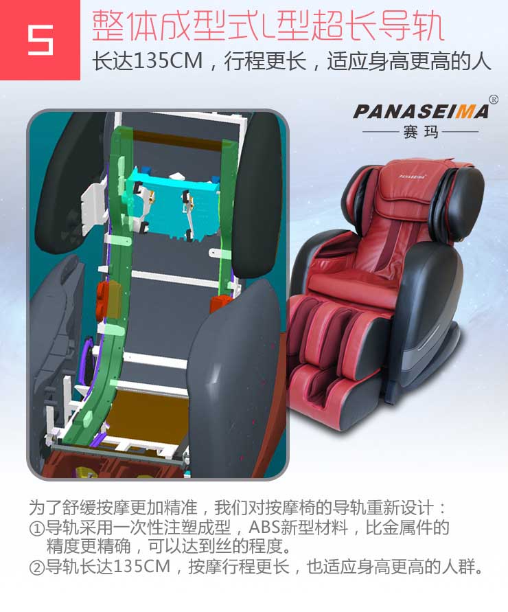 2.導(dǎo)軌長(zhǎng)達(dá)135cm,按摩行程更長(zhǎng),也適應(yīng)身高更高的人群