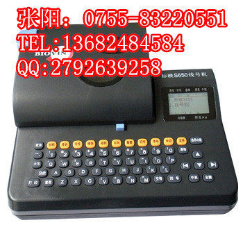 標映套管印字機s650的亮點在于,打印熱縮管的效果的非常好,就是進口的線號機也不及其打印的效果完美!標映線號機s650使用的色帶型號為rs-80b黑色的,色帶也有其他顏色比如白色等,但是這里要注意一點,在打印除黑色色帶以外的彩色色帶,我們需要找到彩色打印這個功能鍵,然后選擇彩色打印,不然會出現(xiàn)打印出錯,一點要記住這一點!標映s650線號機白色背光lcd顯示,全中文界面,支持漢語拼音輸入,2行內(nèi)容顯示,每行可顯示14個英文字母或7個漢字或符號;打印精度為300dpi,采用熱轉(zhuǎn)印方式;自動半切或不半切,并可調(diào)節(jié)半切深度;高速打印,每秒25mm的打印速度;半切打印狀態(tài)下每分鐘可打印35段20mm長的套管,40段20mm長的貼紙;超大儲存,擁有1g儲存空間,可同時儲存128個文件;簡易62鍵中文計算機鍵盤,操作簡單;高性能進口色帶,使字跡清晰,長久不褪色;持久耐用,打印頭加耐磨層,延長壽命;高性價比:整機質(zhì)優(yōu)價廉,耗材批量經(jīng)濟,降低用戶總成本。配備手提包,方便攜帶,適合各種場合使用。功能強大,價格優(yōu)惠,就是它,標映s650線號印字機!