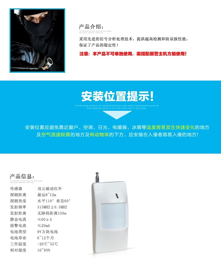 u 用于探測房間,客廳,且用于探測移動并帶有溫度的物體