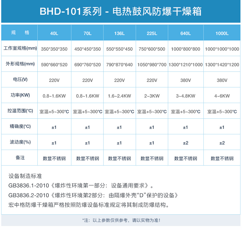 宏中格系列防爆干燥箱適用于工礦企業(yè)、化驗(yàn)室、大專(zhuān)院校、科研單位等作干燥、烘焙熔蠟滅菌之用。