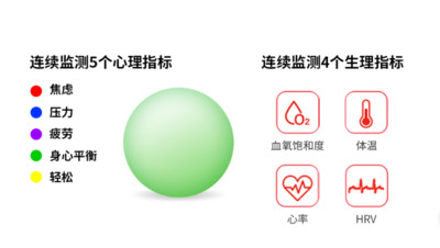 本設(shè)備是集血氧飽和度、體溫、hrv監(jiān)測與焦慮、壓力調(diào)節(jié)于一體的壓力與情緒管理系統(tǒng),連續(xù)監(jiān)測四個(gè)生理指標(biāo)和五個(gè)心理指標(biāo),做針對性的情緒調(diào)節(jié),減輕壓力。