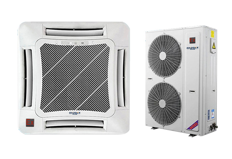 產(chǎn)品具有制冷制熱和自動(dòng)除霜功能,防爆類型為整機(jī)防爆。防爆產(chǎn)品可應(yīng)用于石油、化工、醫(yī) 藥、科研、軍事、危險(xiǎn)倉庫等易燃易爆的混合性氣體環(huán)境中使用。在結(jié)構(gòu)上采用隔爆型、本安 型、澆封型等復(fù)合防爆技術(shù),控制端全由本安 型控制,不產(chǎn)生任何電火花,使用方便安 全,采用高效多翅式換熱器,冷煤通過時(shí)與空氣的接觸更充分,能大幅度的提高空調(diào)的制冷制熱效果,手動(dòng)控制和遙控兩種。未取得防爆合格證不得生產(chǎn)及銷售防爆空調(diào)。