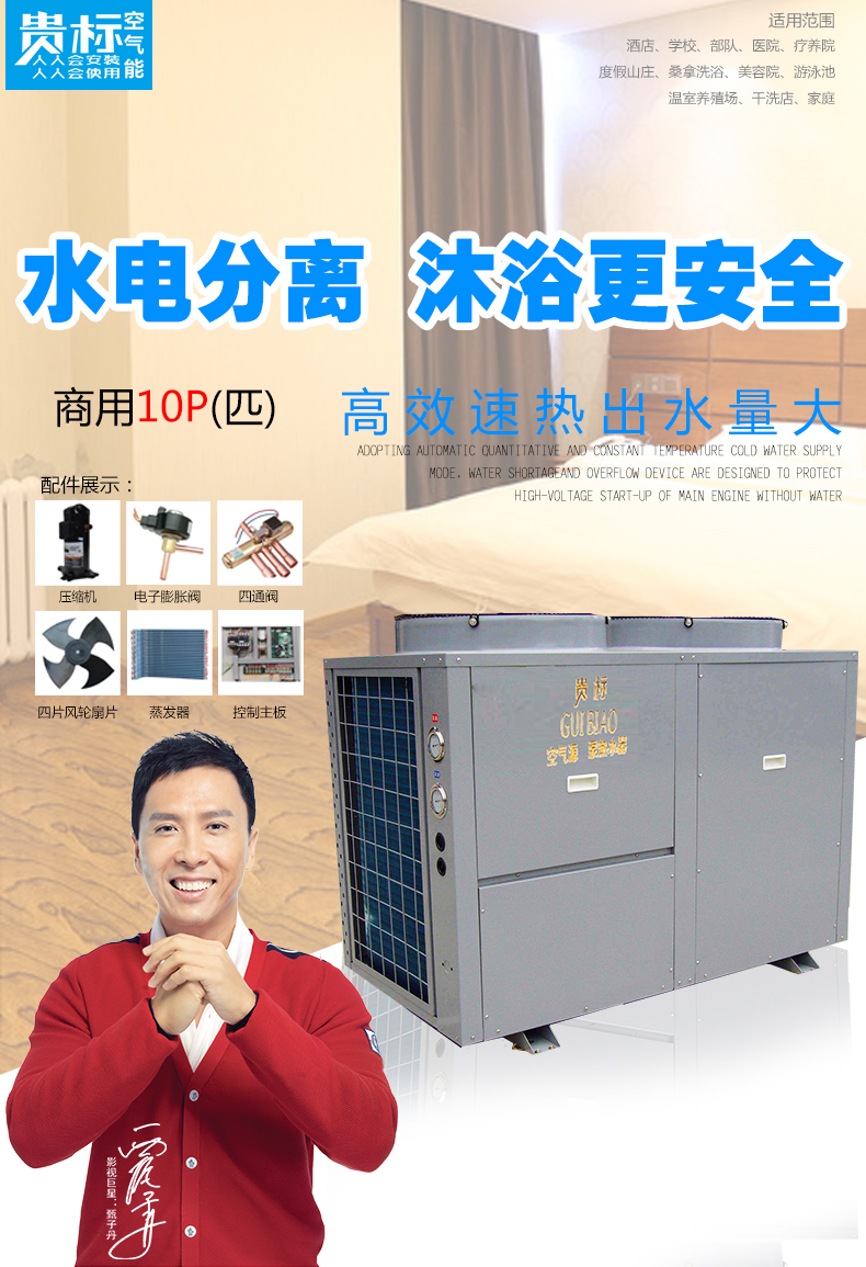 云南貴標(biāo)空氣能空氣源熱泵熱水器,自有工廠,廠家直供。公司限公司位于云南省昆明經(jīng)開區(qū)阿拉街道辦事處海子新村,交通便利。公司本著“客戶,誠(chéng)信至上”的原則,與多家企業(yè)建立了長(zhǎng)期的合作關(guān)系。公司擁有一支較強(qiáng)的技術(shù)研發(fā)隊(duì)伍并和國(guó)內(nèi)大專院校強(qiáng)強(qiáng)聯(lián)手,研發(fā)出擁有自主知識(shí)產(chǎn)權(quán)。在多年的空氣能發(fā)展過程中,貴標(biāo)積累了豐富的設(shè)計(jì)與應(yīng)用方面的經(jīng)驗(yàn),自公司成立以來(lái),貴標(biāo)在注重市場(chǎng)需求的同時(shí),不斷的以新產(chǎn)品引導(dǎo)市場(chǎng)。云南空氣能廠家直銷如:恒溫恒濕泳池機(jī)、高溫烘干機(jī)、冷熱聯(lián)供機(jī)、工業(yè)熱回收機(jī)、地板才采暖熱泵、家用多功能熱泵等,許多技術(shù)的不斷革新使得我們的產(chǎn)品快速的向各應(yīng)用領(lǐng)域深化。多次承接各大酒店、小區(qū)、游泳館的熱水工程。有著豐富的經(jīng)驗(yàn)和嫻熟的技術(shù)。熱誠(chéng)歡迎各界朋友前來(lái)參觀、考察、洽談業(yè)務(wù)。