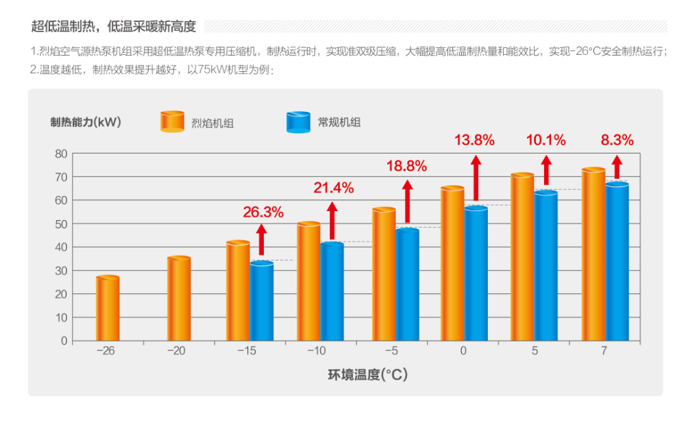 此外,美的“暖家”系列特別針對(duì)戶式家用的特點(diǎn)增設(shè)了智能防凍保護(hù)、試運(yùn)行保護(hù)、水系統(tǒng)安 全保護(hù)等多重保護(hù)功能。而“烈焰”系列商用超低溫空氣能地暖機(jī)組則面向工程客戶,同樣采用節(jié)能低碳的空氣源熱泵技術(shù)以及地板輻射采暖的方式,低溫強(qiáng)勁制熱,能效cop高達(dá)4.55,獲得了國家節(jié)能認(rèn)可。