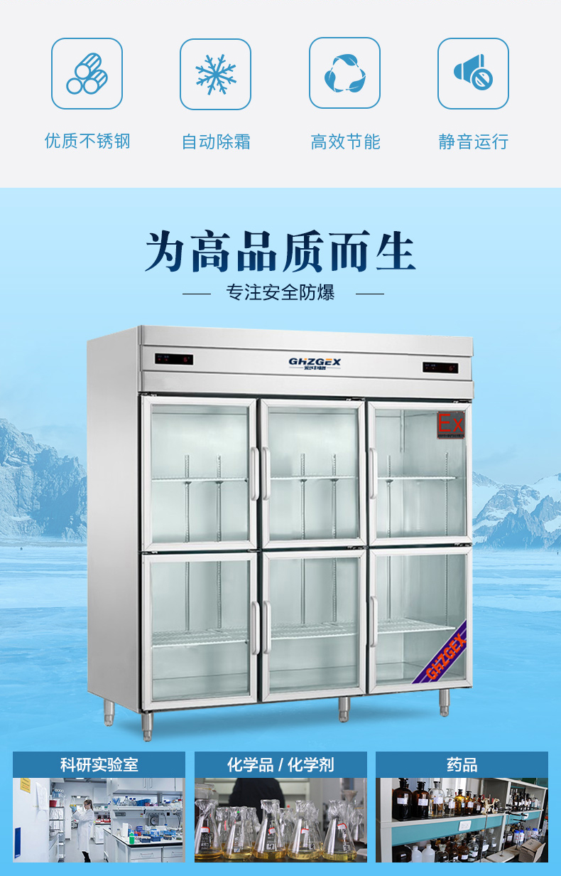 4.采用箱內(nèi)箱外全防爆形式,不僅箱內(nèi)可以存放各類危險(xiǎn)品,而且防爆冷柜可安 置于危險(xiǎn)區(qū)域。