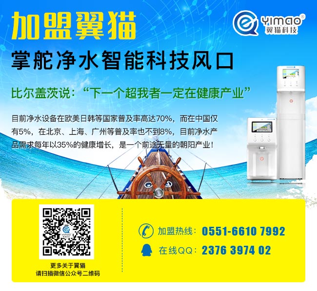 品牌凈水器代理,翼貓凈水器的經(jīng)營采用的是,目前國際先進(jìn)的物聯(lián)網(wǎng)模式。翼貓凈水器用戶可安 裝手機app,使用過程中,凈水器的任何異常問題,都將在機身上顯示,手機app可及時提醒用戶,同時,翼貓科技后臺系統(tǒng)也將在最短時間收到提示信息,從而快速安 排服務(wù)人員到崗為你解決問題。