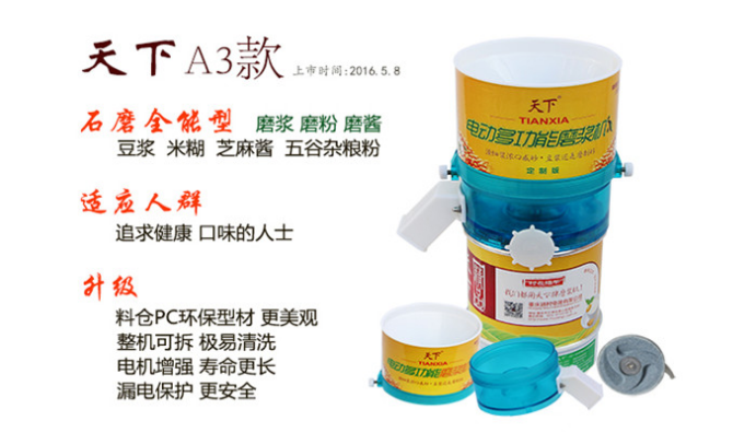 貴州豆制品磨漿機外形、技術(shù)和售價上都甩了其它產(chǎn)品好幾條街,堪稱性價比之王。它精致大氣,時尚美觀。16*36cm的小巧機身賦予了它更加靈動的特點;多項國家實用新型專利和外觀設(shè)計專利包攬其身,引領(lǐng)芝麻 醬機行業(yè)潮流;售價均不過千元,走最親民的路線,不管是自己用,還是送親朋送好友都是良品佳選。以前想要吃豆花,都是一家人聚在一起從泡豆兒、磨漿到點豆花親力親為自己在家推來吃,好不熱鬧。當(dāng)豆花進口的瞬間,嘗到的不僅是天然綠色的豆香更有勞動后的幸福感和成就感,所以格外好吃。而今,因為城市化的發(fā)展,磨子的逐漸消失,想要吃豆花就只能去外面的餐館點一碗,味道上和從前差了許多,心里總覺得缺點啥。哪個牌子的多磨豆?jié){機又比較質(zhì)優(yōu)價美呢?經(jīng)過小編多方走訪對比和詢問,了解到上海多磨豆?jié){機要屬天下磨漿機性價比更高,大量的科學(xué)研究表明,多吃純天然的豆制品,如:豆?jié){、豆花、豆腐等,不僅能夠充分補充人體所需的蛋白質(zhì)和各種微量元素 ,更有抗癌功效。