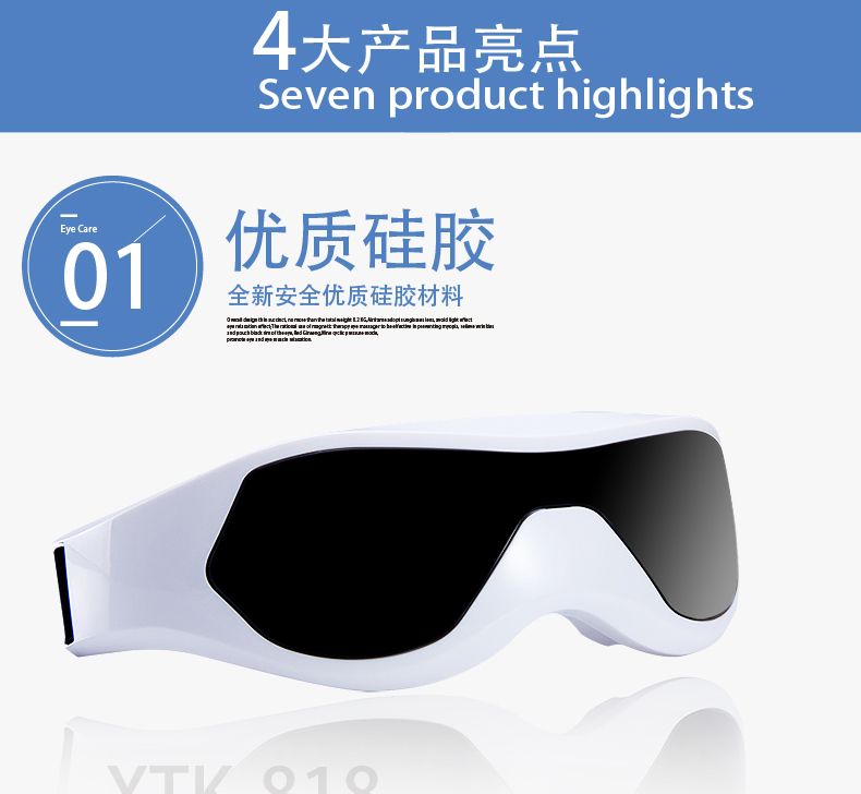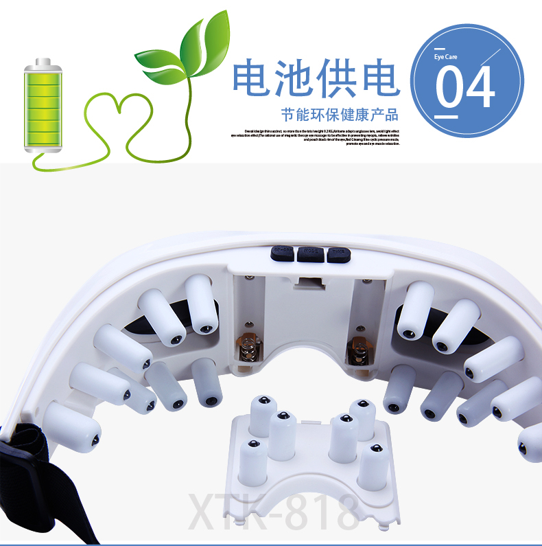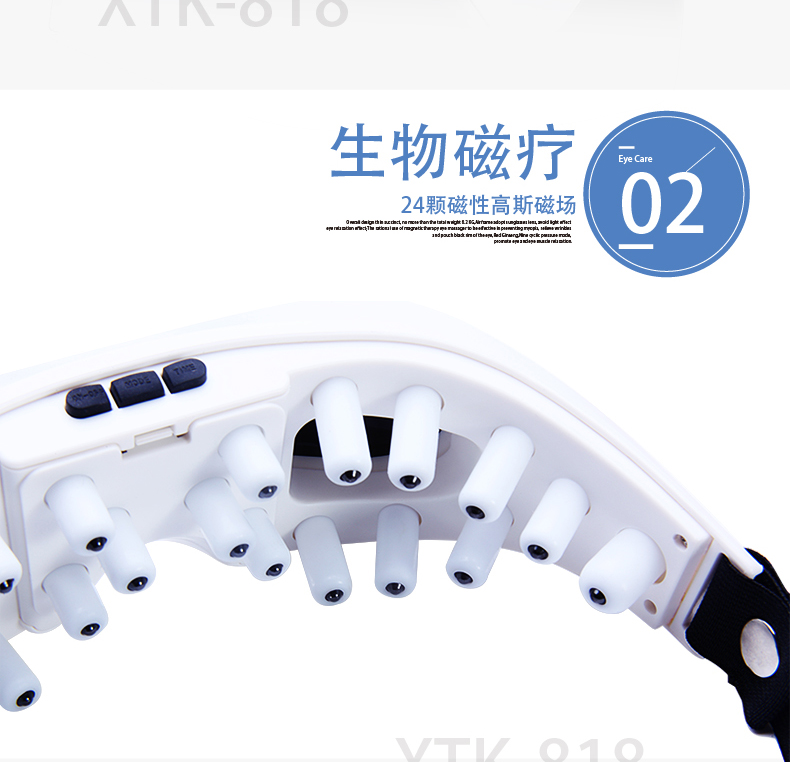 本產(chǎn)品由二十二顆釹磁石組成微循環(huán)磁場,產(chǎn)生標準磁通量為600-800gs,能深入皮下3mm,n.s極交錯排列,形成循環(huán)磁場,能有效地消除眼睛疲勞,促進血液循環(huán),可充分松弛大腦神經(jīng),對睡眠不良者及失眠癥有很好的療效;能有效改善眼部及腦部微循環(huán),可消除眼角皺紋,黑眼圈,保護視力,提高記憶力。適用于家庭每位成員。每天使用眼護士按摩儀可有效預防,眼睛近視,清除眼袋,皺紋,黑眼圈,增強皮膚彈性;產(chǎn)品采用眼鏡式造型,佩戴舒適,按摩力度有九種方式可以調(diào)節(jié),還有自動定時控制,九種循環(huán)指壓按摩方式可使眼球與眼肌充分放松,降低眼內(nèi)壓,消除用眼過度引起的酸 脹,腫痛,干澀,怕光及視物模糊等癥狀;電腦ic程序控制,給您的生活增添無限歡樂,科技,健康舒適,是您身邊的健康衛(wèi)士。外觀精美顏色靚麗,是絕佳的眼部保健小護士,也是贈好友的絕佳的禮品、贈品.