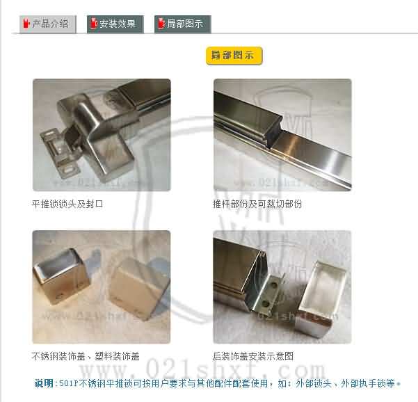 *雙開(kāi)門(mén)配套:鋼烤漆天地桿平推鎖配套或雙門(mén)器配套使用。