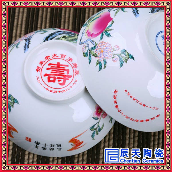 俗話說(shuō):“福如東海,壽比南山”、“人無(wú)百歲壽,常懷千歲憂”。自古以來(lái),中華民族就對(duì)長(zhǎng)壽深深眷戀和寄托本公司專業(yè)為您訂(定)制各種類別/各種款式/各種器形的壽碗→壽桃碗→萬(wàn)壽無(wú)疆壽碗→松鶴延年壽碗→百壽圖碗→吉祥如意壽碗,→中國(guó)紅壽碗→帝王黃壽碗→寺廟捐贈(zèng)禮品,是您賀(祝)壽的最佳禮品,更是您體現(xiàn)孝道的最佳方式。
