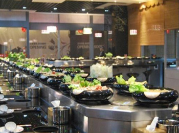 回轉(zhuǎn)火鍋設(shè)備運(yùn)轉(zhuǎn)原理:當(dāng)回轉(zhuǎn)火鍋設(shè)備啟動之后,其輸送帶就會自動不;剞D(zhuǎn),工作人員可以用盤子裝好食材然后放置在輸送帶上,然后輸送帶就會帶著食材圍繞店鋪的座位循環(huán)回轉(zhuǎn)。工作人員站在原地就可以隨時補(bǔ)充新鮮的食材,而不用到處跑動,最大限度的減縮了人力資源成本的損耗。而消費者也不用再看哪些枯燥無味的菜單,就坐在舒適的椅子上看著眼前的食材,喜歡就拿,不喜歡就讓其繼續(xù)輸送過去即可。既節(jié)約人力資源投入,也方便消費者,更具有安 全、快捷、衛(wèi)生、舒適、美觀、時尚等特點。