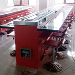 旋轉(zhuǎn)火鍋傳送設(shè)備 回轉(zhuǎn)火鍋設(shè)備用途廣泛,已經(jīng)成為當(dāng)今一種流行的元素 ,適用于壽司、火鍋、自助餐店及其他的商品展示。單人單爐符合人們的衛(wèi)生習(xí)慣,且該火鍋輸送設(shè)備具有兩用的優(yōu)點(diǎn),冬天用在火鍋,夏天用在壽司,只要用特制的不銹鋼蓋板封住餐桌上的爐孔即可成為壽司輸送設(shè)備,既實(shí)惠又方便,讓您體現(xiàn)經(jīng)營(yíng)壽司和火鍋的樂趣,又便于客人在各自的座位上可隨意選擇擺放在輸送帶上的食品,無(wú)需服務(wù)員送上。