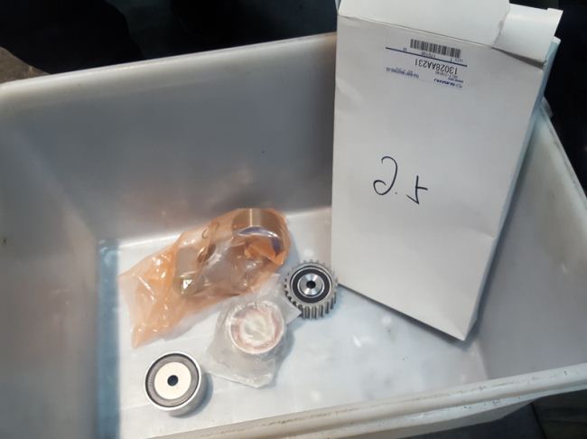 此次更換正時皮帶、惰輪、漲緊輪、水泵。