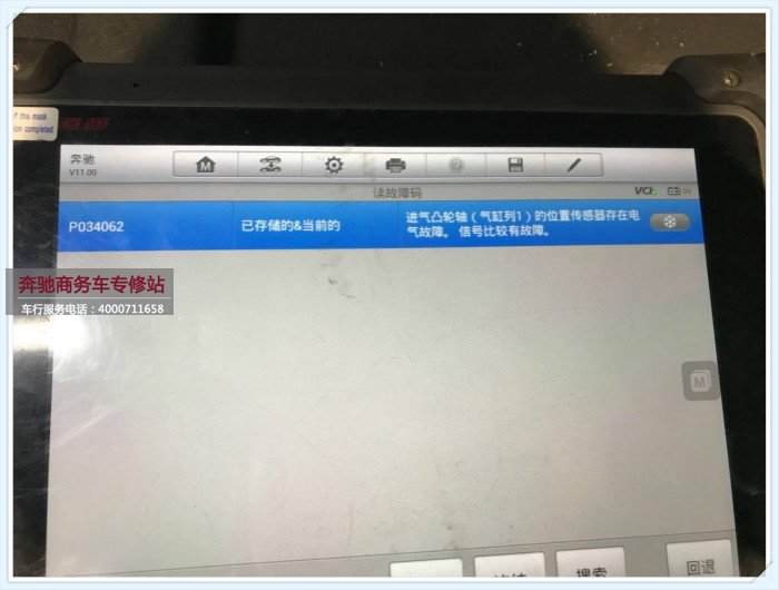 一輛行駛5.5萬公里的奔馳c200出現(xiàn)涼車啟動異響、延遲的故障到店維修,接入電腦檢測故障碼,p034062 進氣凸輪軸(氣缸列1)的位置傳感器存在電氣故障,信號比較有故障。