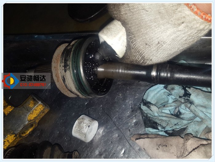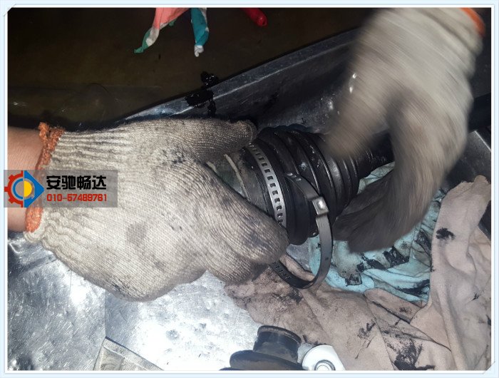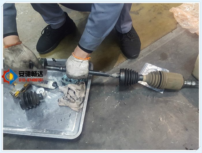 車進廠后技師將車上舉升機檢查發(fā)現(xiàn)半軸漏油,深度檢查發(fā)現(xiàn)半軸防塵罩破裂,和車主協(xié)商后選擇更換半軸防塵罩。