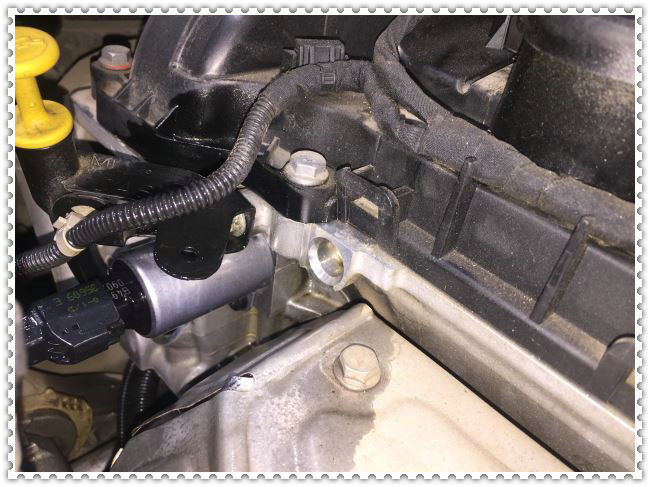 出現(xiàn)故障表現(xiàn)為:發(fā)動機怠速抖動,行駛中加速無力,發(fā)動機故障點亮起;車主反應說該車一年前更換過火花塞和氣門室蓋墊,和一些密封圈。目前底盤還存在一些滴油現(xiàn)象,就在發(fā)動機的正下方位置。