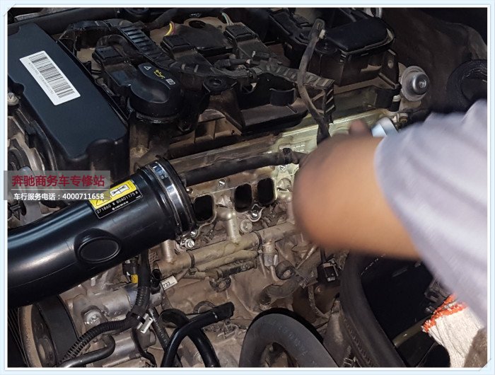 一臺(tái)奔馳e260l行駛9w公里,出現(xiàn)車抖動(dòng)力下降問(wèn)題,來(lái)本廠檢查汽車進(jìn)氣道積碳。