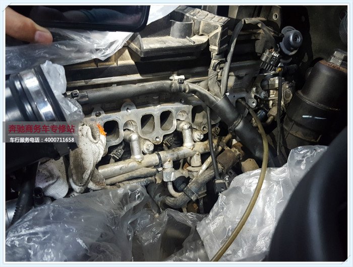 車輛進(jìn)廠后技師拆掉發(fā)動(dòng)機(jī)上面附件,取下進(jìn)氣歧管,查看進(jìn)氣道積碳較多。