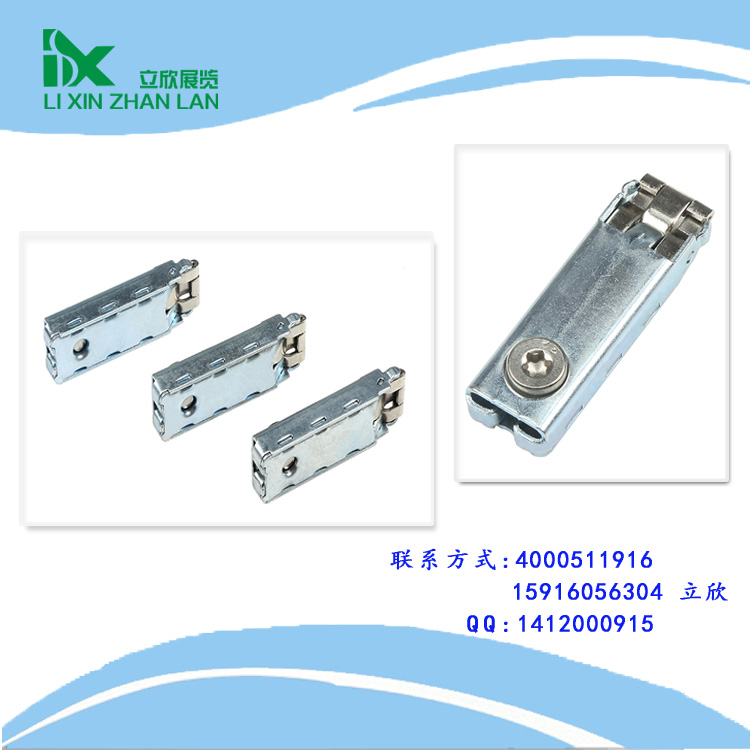 三卡鎖鎖件主要用于展覽場(chǎng)館,各類型材之間的連接搭建。它將兩個(gè)搭接方向不同、端面形狀不同或相同的鋁型材,通過插入型材槽口的卡爪的張開運(yùn)動(dòng)實(shí)現(xiàn)相互連接。鎖件是由彈簧片.彈簧,偏心輪.上蓋.下蓋五部分組成,結(jié)構(gòu)合理.牢固性好,使用方便,尺寸符合行業(yè)標(biāo)準(zhǔn).彈簧片采用西德進(jìn)口高級(jí)彈簧鋼,模壓成行后,經(jīng)先進(jìn)的熱處理工藝加工而成,尺寸精確,無變形,具有較好的韌性高的強(qiáng)度和彈性極限,高的疲勞強(qiáng)度和極底的彈性模量.以p行輪替代了傳統(tǒng)的凸輪帶動(dòng)彈簧片縱向運(yùn)動(dòng),避免了鎖過頭的現(xiàn)象,保證了鎖件的牢固性,彈簧片具有較大的張開度,確保鋁型材不損壞.三卡鎖特點(diǎn):拆裝組合方便,易裝易拆,便于運(yùn)輸,節(jié)省存儲(chǔ)空間,經(jīng)久耐用承受力150公斤。適用于展位,扁鋁連接,標(biāo)攤固定等