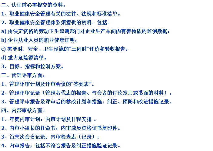 ohsas18001認(rèn)證所需要的資料