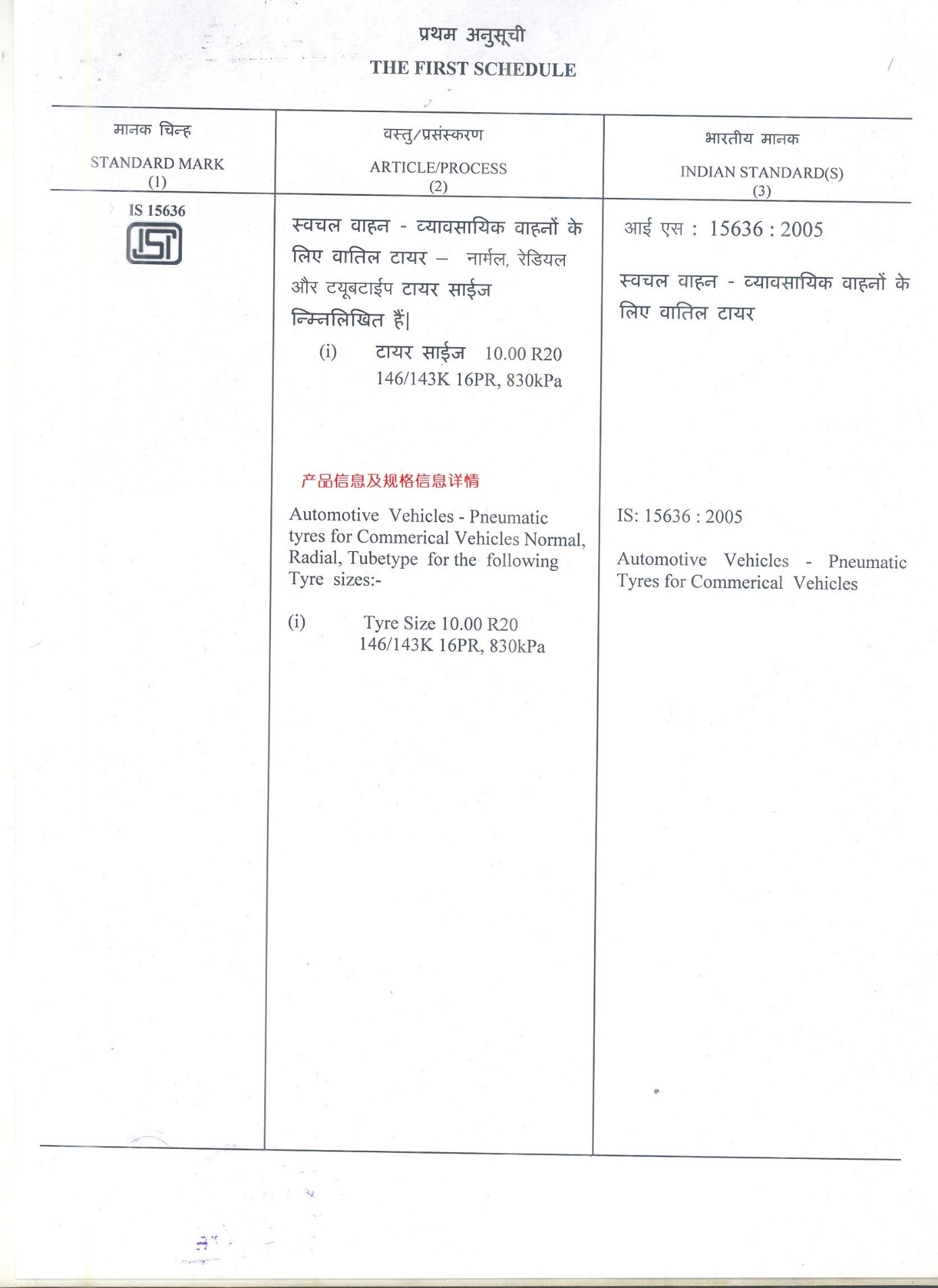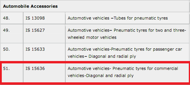 輕卡&載重胎(通稱商用胎)印度bis 認(rèn)證