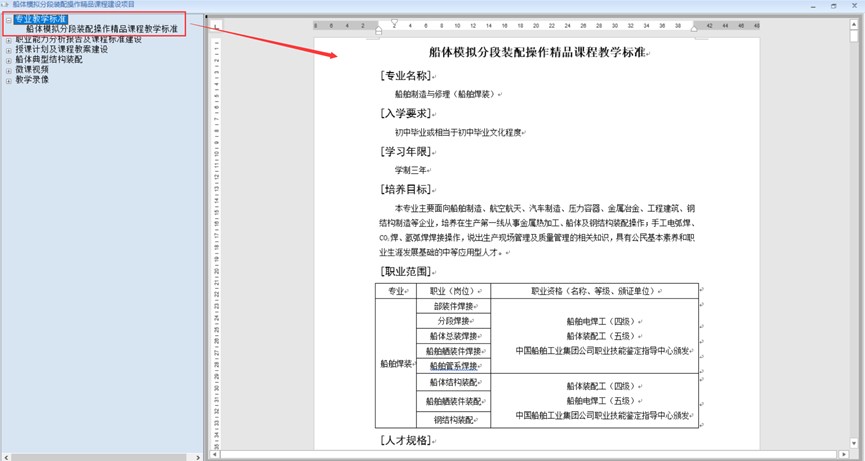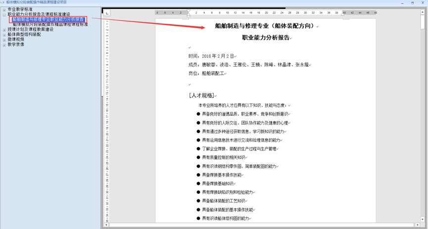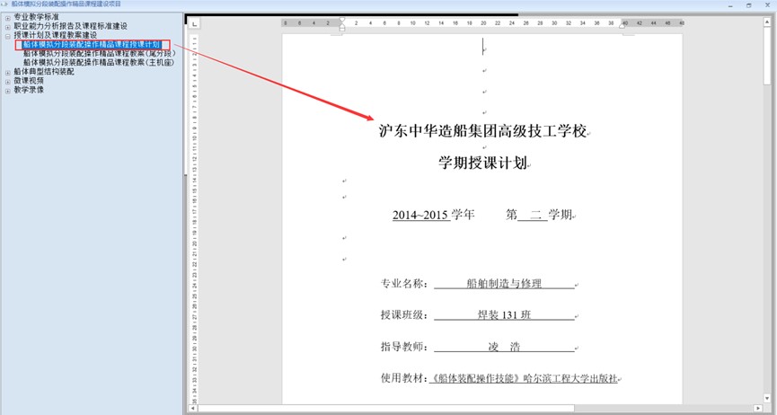 此軟件主要是為了更清晰方便的向用戶展示“專業(yè)教學(xué)標(biāo)準(zhǔn)”、“職業(yè)能力分析報告及課程標(biāo)準(zhǔn)建設(shè)”、“授課計劃及課程教案建設(shè)”、“船體典型結(jié)構(gòu)裝配”、“微課視頻”以及“教學(xué)錄像”等課程。