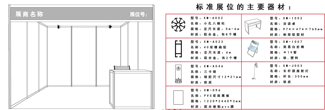展位所組裝的主要材料為八棱柱,扁鋁,pvc展板,八棱柱特點:拆裝組合方便,結(jié)構(gòu)多變,方便運輸,功能多,效果宏偉大氣,租賃費用低廉。
