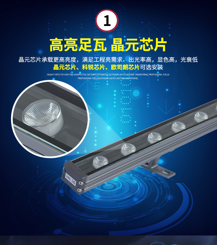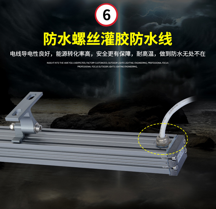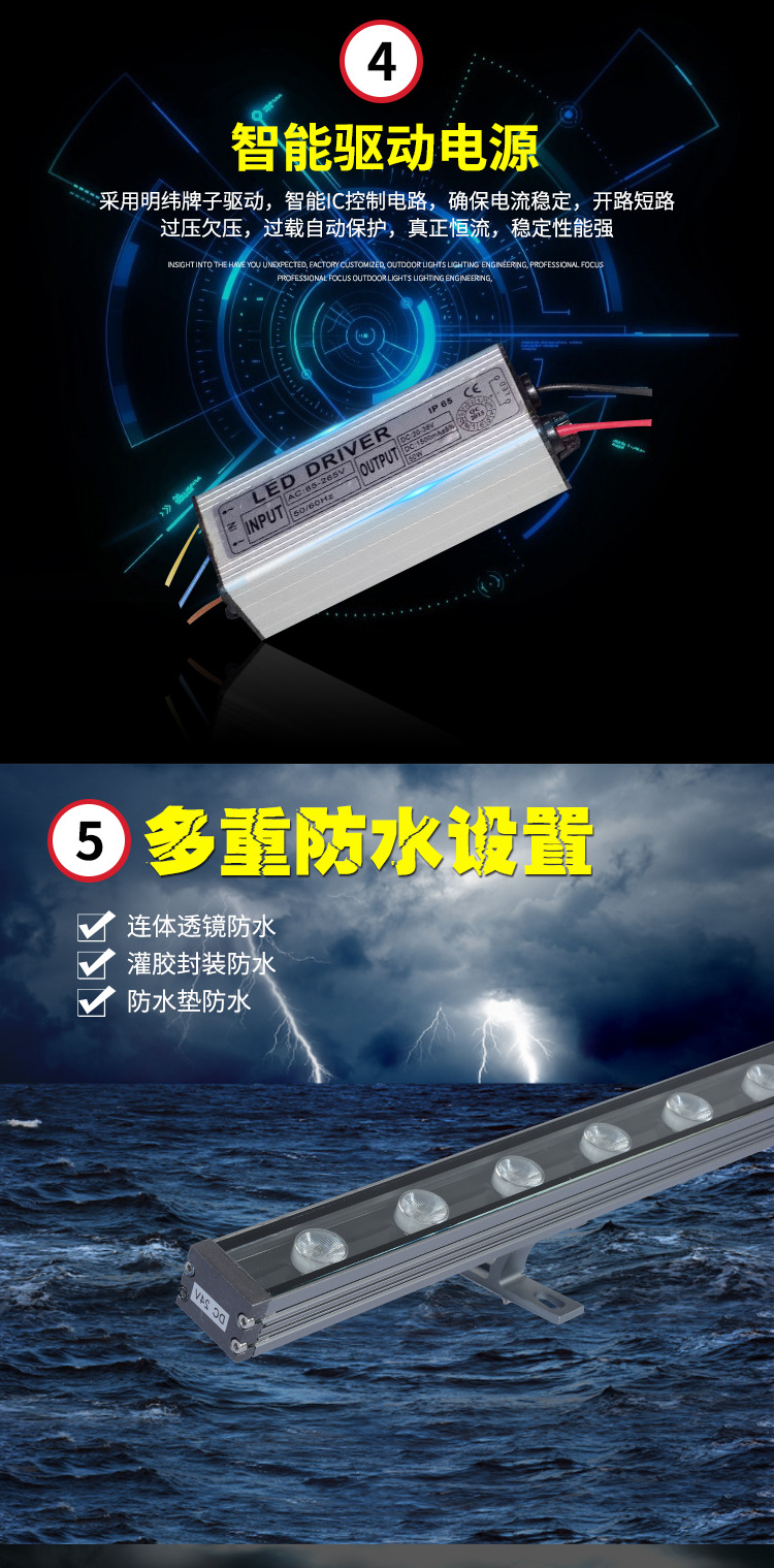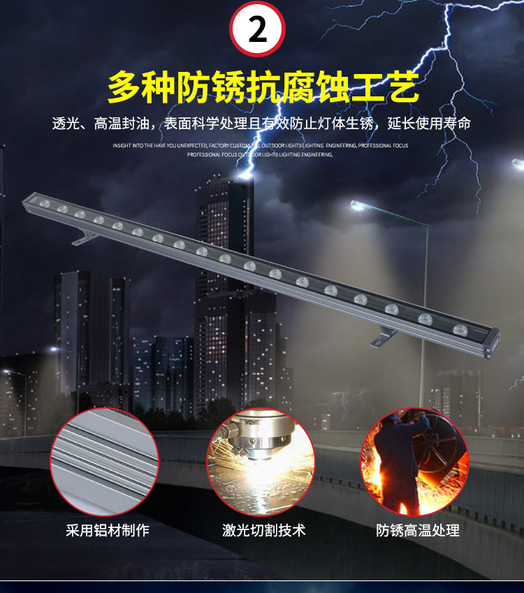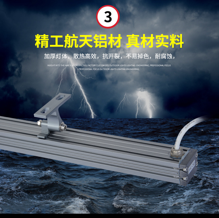 led洗墻燈采用進(jìn)口壓鑄鋁材,表面氧化處理 超強(qiáng)的抗腐蝕性、抗壓性,卓越的防水性,內(nèi)部孔位全防水,采用先進(jìn)的硅膠灌封技術(shù)灌封及結(jié)構(gòu)防水技術(shù),耐150度以上高溫、不老化、燈體密封性好,采用高透光鋼化玻璃,安 全性好,品質(zhì)有保障