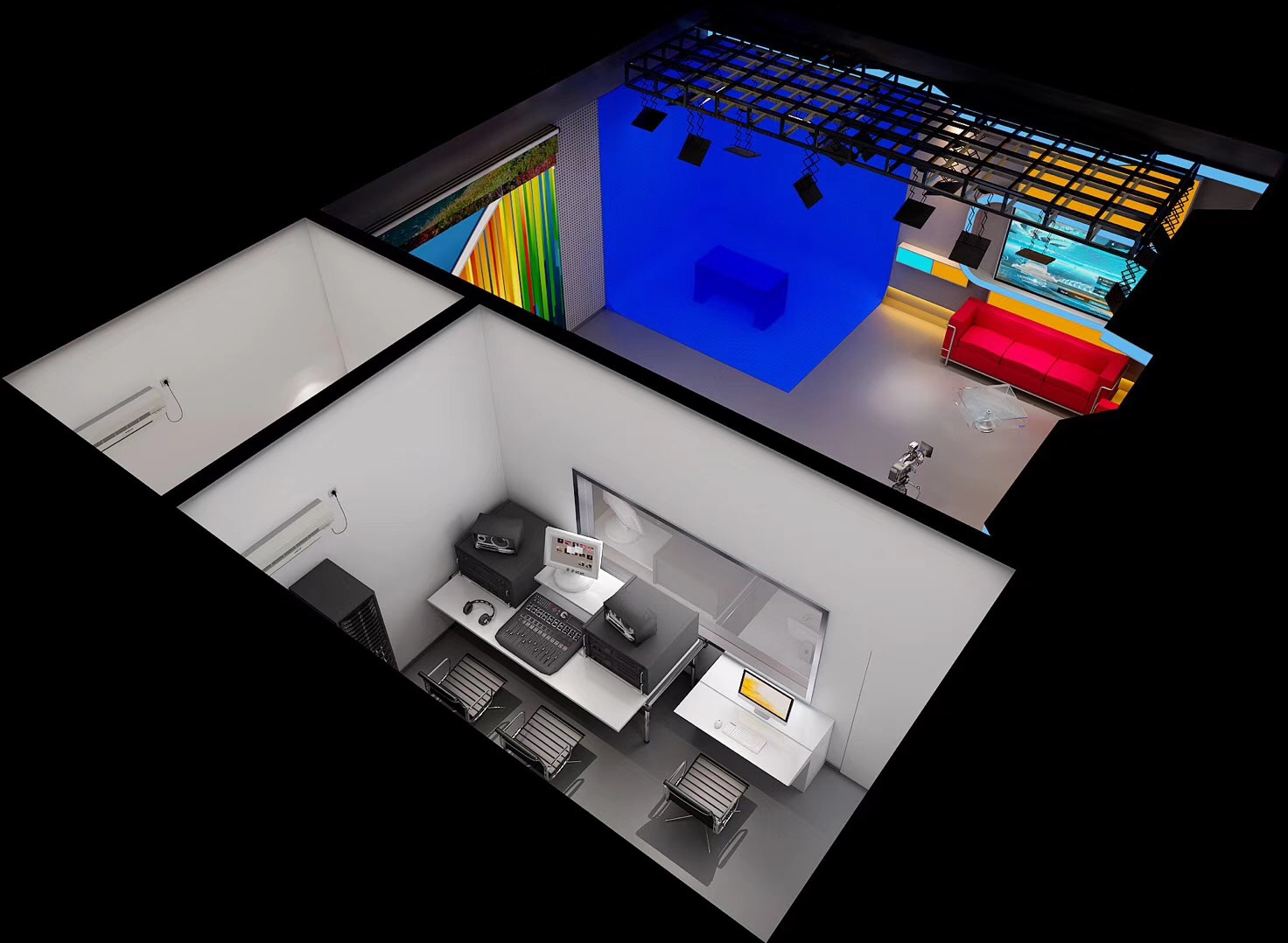 這是一個虛實(shí)結(jié)合的校園融媒體演播室效果展示