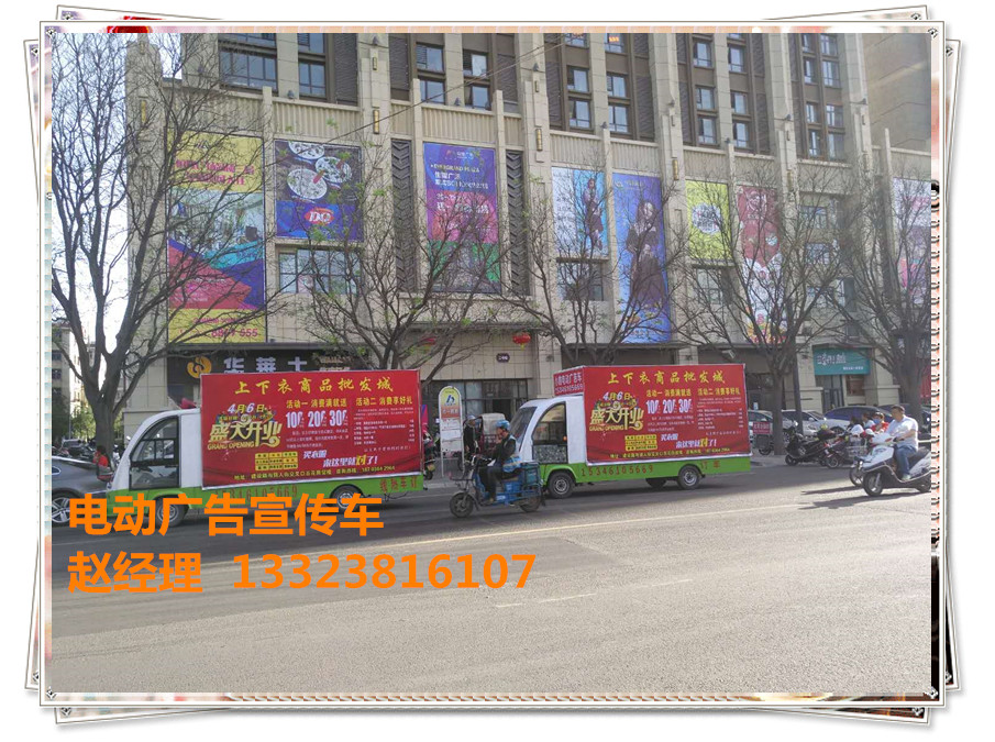 雖說(shuō)成功有份很多類,可是事業(yè)的成功是大家都向往的。在如今的社會(huì)情況下要把事業(yè)做成功,需要有勇氣、機(jī)遇以及才能這其中任意一項(xiàng)都不能缺少。在如今就業(yè)困難的情況下我們?cè)撊绾握业侥繕?biāo)呢?很多人都會(huì)選擇一個(gè)好的行業(yè)去創(chuàng)業(yè),雖然不一定創(chuàng)業(yè)就能成功,可是不創(chuàng)業(yè)就連不一定的可能性都沒(méi)有了。最近有看到很多新聞,都是在講很多大學(xué)生大學(xué)畢業(yè)做的不是自己專業(yè)的公司,而是去選擇創(chuàng)業(yè)。其中不乏做的不錯(cuò)的人,他們就是有這樣的勇氣和抓住了這樣的機(jī)遇,從而走向了成功。而我們?nèi)鹂齐妱?dòng)公司生產(chǎn)的電動(dòng)廣告 車是一款專為創(chuàng)業(yè)人士準(zhǔn)備的宣傳設(shè)備,因?yàn)樗邆渲顿Y低回報(bào)大的特點(diǎn),深受很多創(chuàng)業(yè)者的青睞。