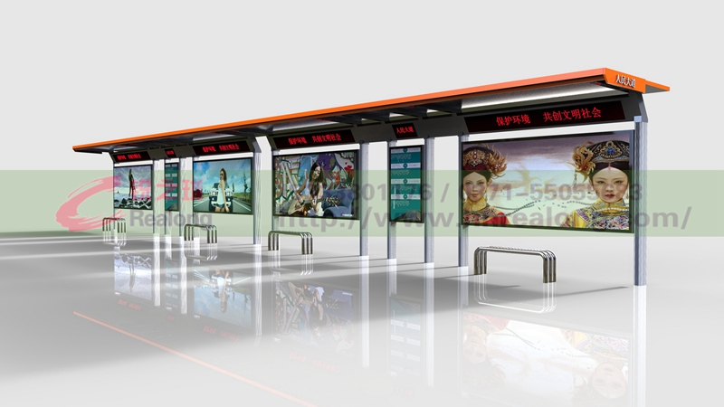 7.候車亭燈箱主要材料為不銹鋼板、耐力板及奶白燈箱片組合而成。燈箱采用1.2mm厚不銹鋼沙光板折彎焊接成型,內(nèi)部分布有龍骨架,采用奶白燈箱片或耐力板能有效的展示燈箱廣告 的夜間效果,完全符合候車亭制作要求規(guī)范;