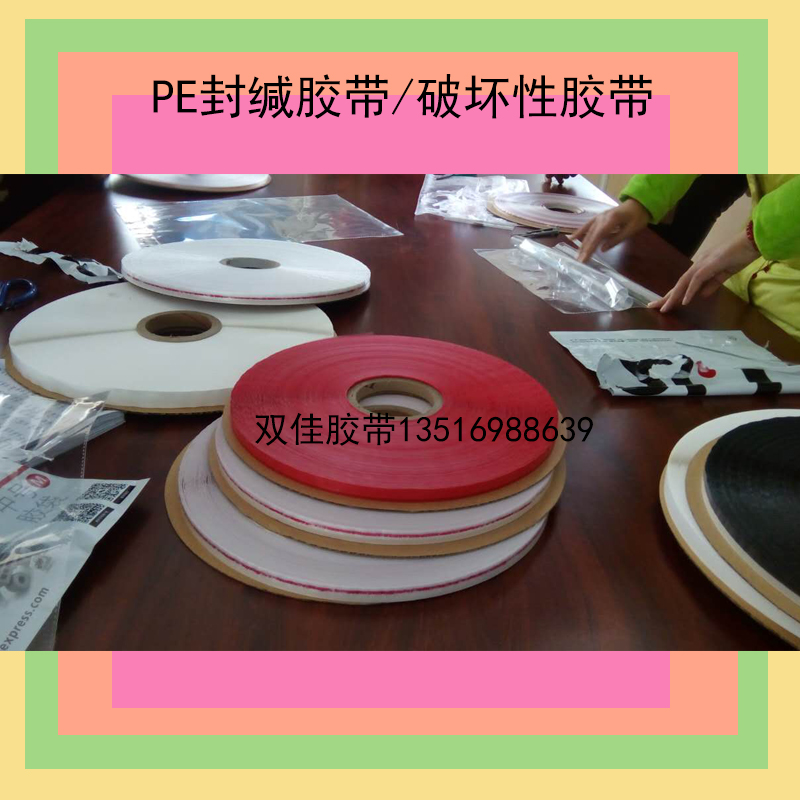 破壞性雙面膠帶與普通封緘膠帶相似,里面涂布比離型膜窄的膠條,因此易于撕除離型膜;同時具有超強的表面粘著力,長效的保持力,良好的熱穩(wěn)定性以及破壞性的特性,所以只能一次性使用。適用于郵件袋、快遞袋、保密袋、產(chǎn)品包裝袋等各種塑膠袋封口,粘合后只有破壞包裝才能接觸其中物品,起到良好的保密作用。