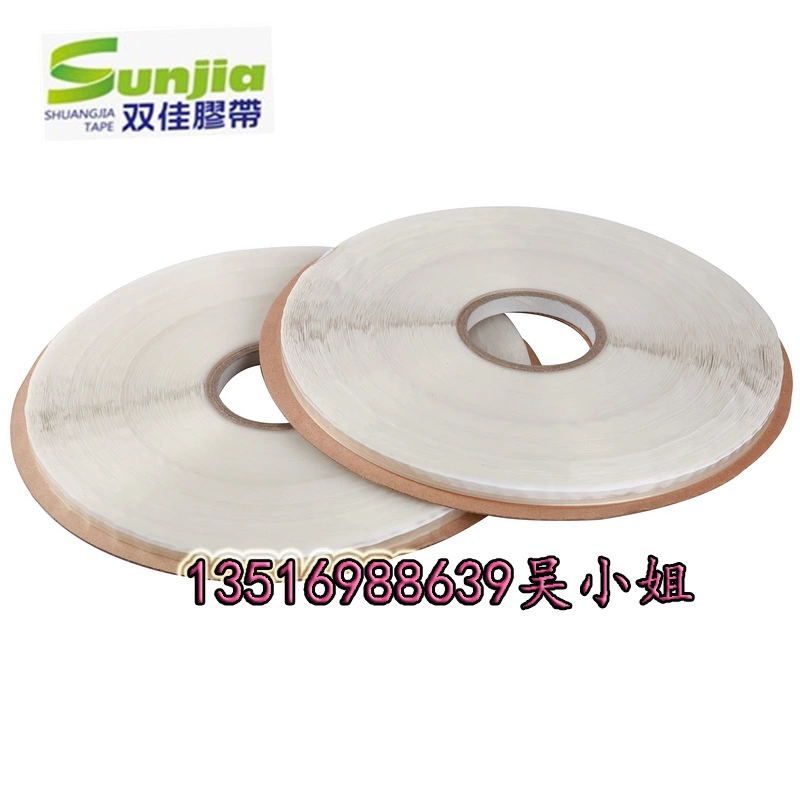 產(chǎn)品表面bopp保護(hù)離型膜由雙佳膠帶廠自吹自離,嚴(yán)格控制膜寬膜厚,大大降低了膠帶的成本,使opp封緘膠帶在市場(chǎng)上具有一定的價(jià)格優(yōu)勢(shì)。吹膜bopp粒子由臺(tái)灣進(jìn)口,品質(zhì)優(yōu)良,吹出的bopp薄膜膜薄亦切,不會(huì)拉斷,能夠在高速運(yùn)轉(zhuǎn)的制袋機(jī)上自由轉(zhuǎn)動(dòng)。保護(hù)膜離型采用高質(zhì)離型劑 ,由最新型的離型機(jī)離型,在制袋機(jī)上轉(zhuǎn)動(dòng)過程中不會(huì)分層,不會(huì)產(chǎn)生雜聲。不同于一般雙面膠,opp封緘膠帶保護(hù)膜采用延展設(shè)計(jì),即保護(hù)膜寬度大于黏膠寬度,易撕起,降低了雙面膠帶的使用難度,大大提升了包裝袋封口速率。
