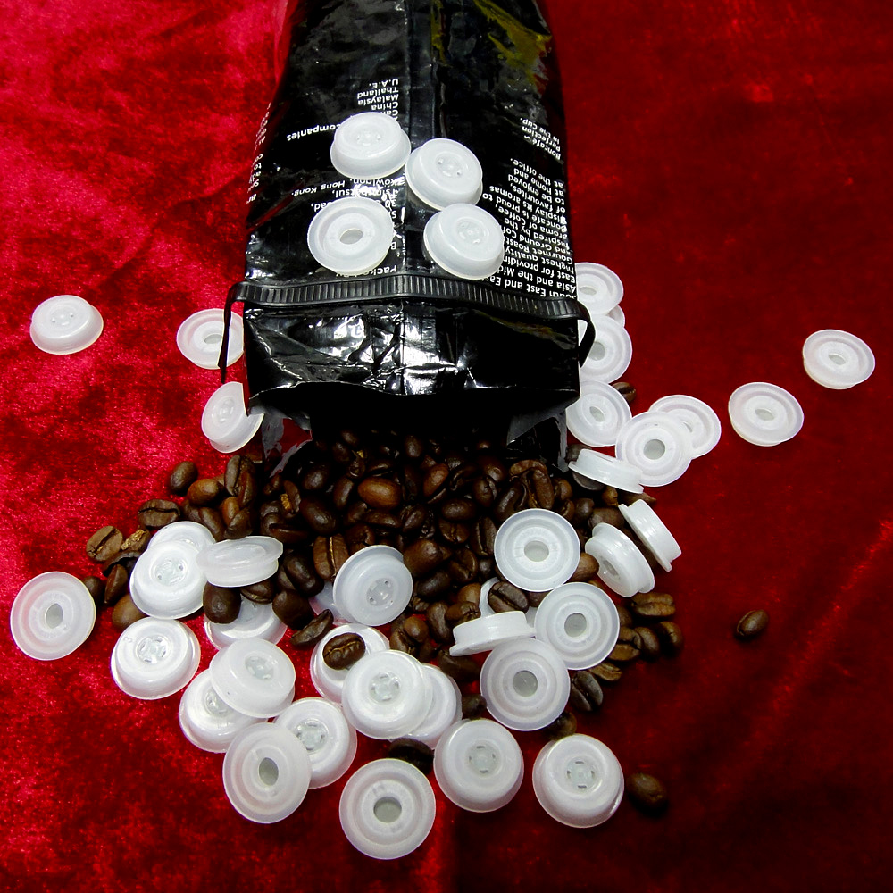 對于咖 啡 豆,大米等會自發(fā)酵的產品都會揮發(fā)出氣體,使得包裝產品的容器會因此而膨脹起來,尤其是使用復合袋包裝的時候。產品不斷發(fā)酵產生的氣體除了改變原來包裝的形狀甚至會使包裝爆破而導致廠家損失嚴重。那么通常解決這問題的方法是在包裝內焊接一個單向排氣閥,使包裝內的多余氣體順利排出,從而保證了內容物的品質和消除了因此而產生的包裝膨脹或爆裂的風險。