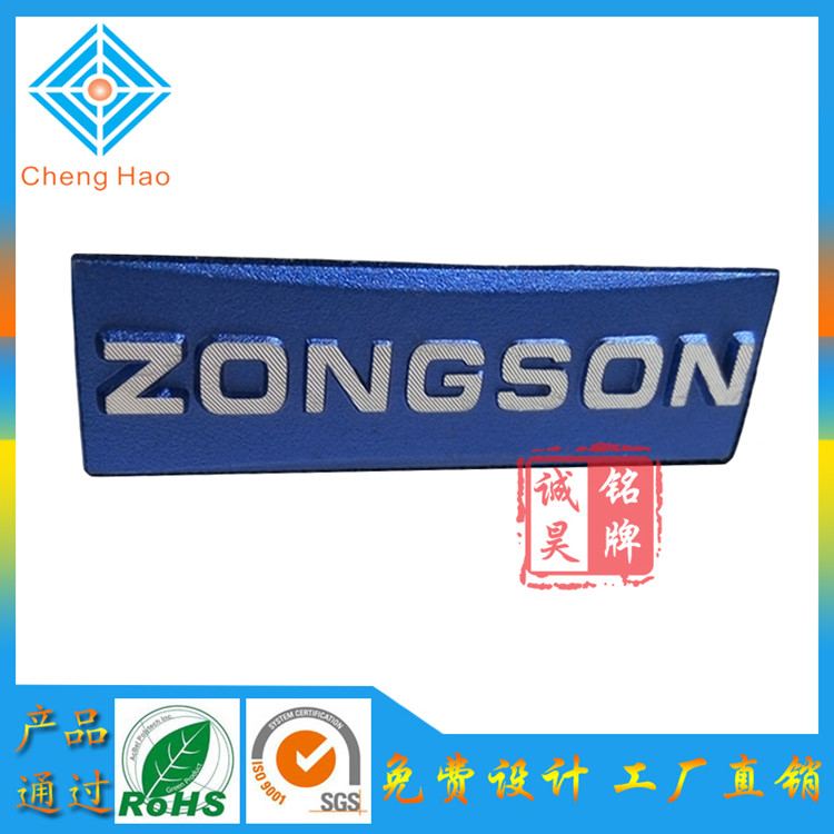 鋁合金壓鑄標牌也稱鋁標牌,又叫壓鑄鋁銘牌,鋁合金標牌,鋁合金商標,鋁合金logo,高光銘牌,雕刻金屬銘牌,拉絲標牌,鋁牌標牌,合金銘牌,壓鑄標牌,壓鑄銘牌,鋁合金壓鑄標牌可分為:黑底銀字標牌,銀底銀字銘牌,沿字切邊的鋁銘牌,沿字留邊的鋁標牌,帶邊框的鋁合金標牌,不帶邊框的鋁合金金屬標牌,氧化鋁合金標牌,涂漆鋁標牌,沙底金屬標牌,噴漆鋁銘牌,噴沙氧化壓鑄標牌,倒邊壓鑄鋁銘牌,拉紋鋁合金標牌。