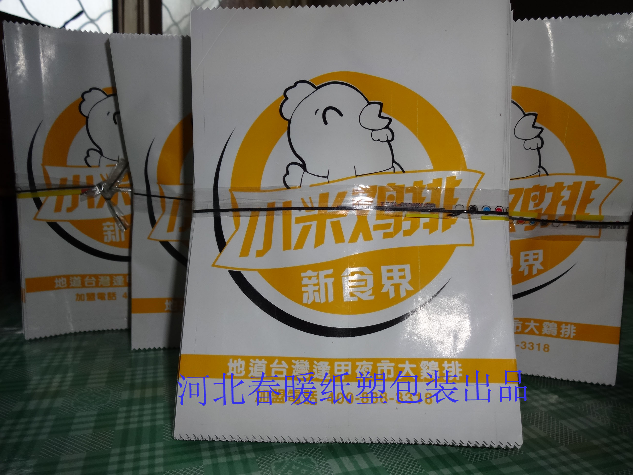 本款小米雞排紙袋是公司科研人員從市場實際需要出發(fā),經(jīng)多年研究,從而推出的一款新型環(huán)保包裝——防油紙小米雞排袋。它采用食品級原紙與塑料薄膜相復合,既克服了以往單層原紙易吸潮,滲油的缺點,又避免了塑料袋因太厚而難于降解,給環(huán)境帶來嚴重污染的缺陷。
