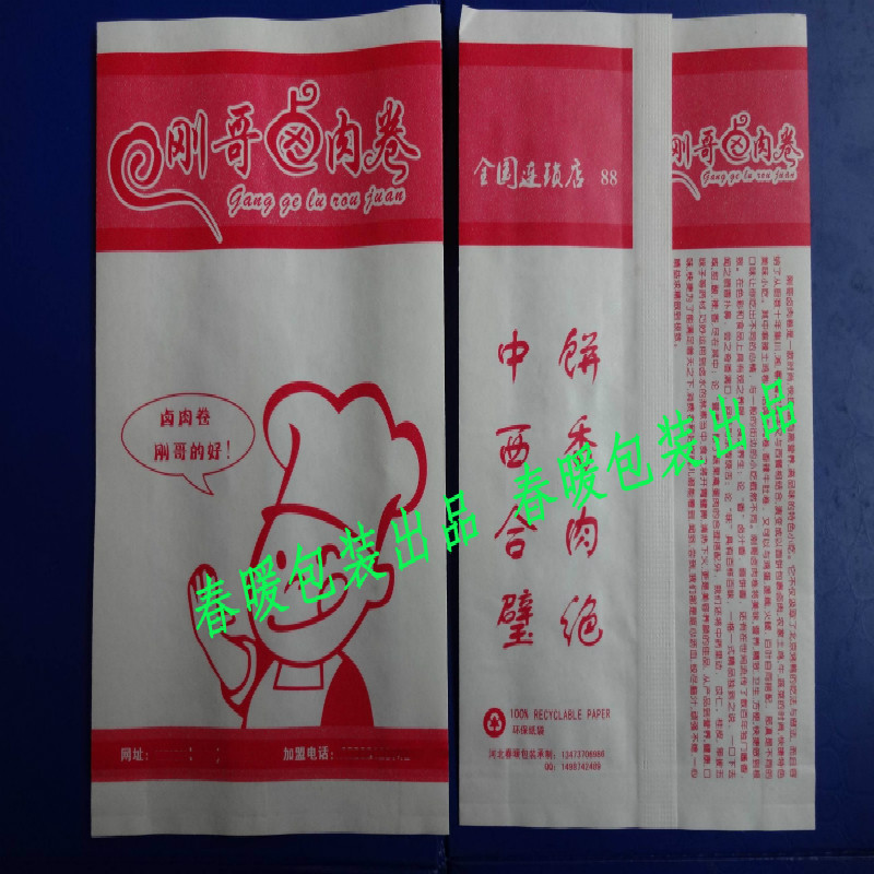 5專業(yè)生產(chǎn): 防油紙袋(淋膜紙袋)如:醬香餅袋、手抓餅袋、麥 多餡餅袋、肉夾饃袋、漢堡袋、漢堡紙、面包袋、公婆餅袋、雞柳袋、燒餅袋、栗子袋、糖葫蘆袋、烤雞脖袋、烤雞袋、羊肉串袋、煎餅袋、牛肉干袋、里脊肉餅袋、瓜子袋、男孩袋、女孩袋、驢肉火燒袋、大米袋、茶葉袋、地瓜袋······