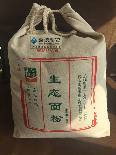 根據(jù)環(huán)保、健康、原生態(tài)這些理念,鄭州璞誠(chéng)制袋開發(fā)設(shè)計(jì)了一款裝面粉 的布袋,這種布袋的材質(zhì)為帆布,這種密度