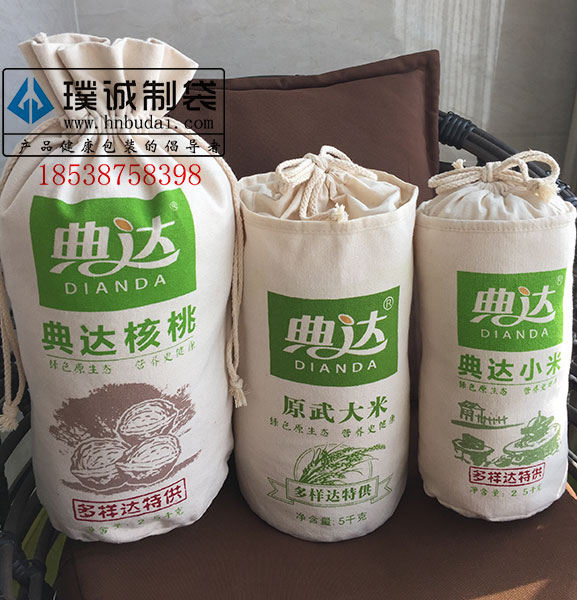 這款大米袋,采用老粗布作為材質,給人一種懷念的感覺。底部采用捏角工藝,便于袋子的站立,布料結實耐用,成本不高,