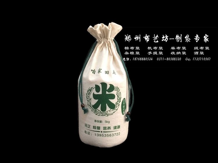 封口:之所以提及到這一點就是因為很多客戶質疑束口袋的封口方式,認為這樣封口會漏出谷物 ,的確如果簡單的把繩子拉緊會漏出大米面粉 等散裝物,有一種產品叫做手拿式封口機,可以在 收口下面1-2cm處縫一道線,這樣顧客在買到產品之前是絕對不會漏出的,到顧客買到之后自行拆 開包裝,之后收口用的繩子就起到了作用,根據需要打開收緊。