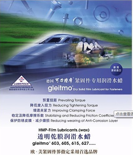 此外,gleitmo 615 亦可有效改善不銹鋼或合金緊固件因組裝/鎖入時(shí)速度、摩擦而導(dǎo)致「螺紋磨損」與「冷熔接(冷焊) 」問題。故亦長(zhǎng)期為業(yè)界采用,作為緊固件咬死、鎖死現(xiàn)象的解決方案!
