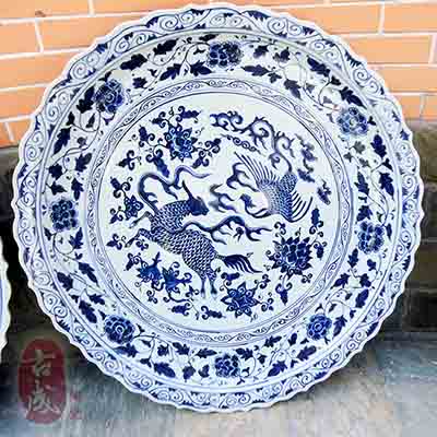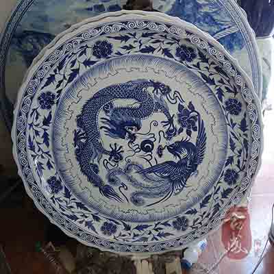 景德鎮(zhèn)陶瓷瓷廠生產(chǎn)的陶瓷大瓷盤適用于商務(wù)辦公場(chǎng)合、酒店大堂裝飾、酒店餐廳巨型器皿、大堂隔間屏風(fēng)、工地竣工紀(jì)念、名人肖像館紀(jì)念等。景德鎮(zhèn)大瓷盤常規(guī)規(guī)格在1米-1.8米,畫面有蟲魚鳥獸,梅蘭竹菊,蓮花,植物,樓閣,牡丹,龍紋,庭院國(guó)畫等。由于大瓷盤直徑太大,通過模具制作是根本不可行的。因此制作這款陶瓷大瓷盤從泥胚的制作開始都是人工手工拉坯、修坯