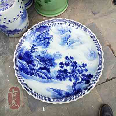 景德鎮(zhèn)古成陶瓷于在2012年推出酒店海鮮大瓷盤以來。現已為浙江溫州“味仙”酒樓、浙江義烏“王都”酒樓、廣東深圳“漢龍”酒樓等一些知名酒樓定做過大魚盤,深受廣大客戶的信賴與支持。其特色的巨型瓷盤與其獨特的餐飲風格,獨特的飲食氣氛,其形成了一道特色的招牌菜系。深受廣大客戶的追求和喜愛。我廠生產的瓷盤畫面是采用景德鎮(zhèn)傳統(tǒng)手工繪制的。畫面有富貴牡丹、江南水鄉(xiāng)、亭臺樓閣、青花山水等經典畫面,畫面可以根據客戶需求定做。大瓷盤的主體工藝如果想通過模具制作那是根本不可能的。原料必須采用景德鎮(zhèn)原產的高嶺土簡稱:(高白泥)以及傳統(tǒng)的手工拉坯工藝成型。因此制作這款陶瓷的開始都是老師傅手工拉坯。修胚待泥胚干燥后,純手工繪制圖案。這是現代貼花工藝不可企及的。而這僅僅是其中的一部分,其最后取決與窯火燒制(古有十窯七不成的說法)就像我們制作10塊150公分的瓷盤就必須要準備15塊泥胚。甚可能會更多?上脒@不僅是我們日用的瓷盤。更多的是一件藝術品。