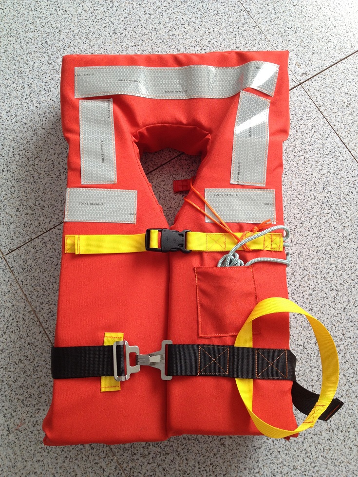新標(biāo)準(zhǔn)船用救生衣是配備在船舶,海上平臺等水上環(huán)境中,用于旅客或者船員落水后的救生防護(hù)裝置。適用于國際航行船舶及沿海、內(nèi)河船舶船員和旅客救生使用。新標(biāo)準(zhǔn)船用救生衣配有救生口哨,遇險(xiǎn)后后吹動(dòng)口哨呼救。該救生衣還也可配可拋投的漂浮系帶,系在水中另1人穿著的救生服或者救生衣上,還配有可救援的提拉環(huán),讓救援人員將穿者托出水面送入救生艇或救生筏內(nèi)。