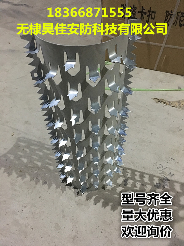 我公司生產(chǎn)各種規(guī)格燃?xì)夤艿婪琅婪辣I刺、下水管道防爬防盜刺、圍墻防爬防盜刺。如今小區(qū)的居民樓外墻的水管與陽臺(tái)設(shè)計(jì),十分有利于小偷。 的攀爬:水管直徑足有10厘米粗,豎立在外墻上,與陽臺(tái)窗戶之間相距盡10厘米這種墻的外部設(shè)計(jì)像梯子,小偷爬水管三步兩腳就到樓上了,太不安 全。業(yè)內(nèi)人士認(rèn)為人防是基礎(chǔ),技防才是根本,不能單單依靠物管、保安 及公安 民警,還要增加設(shè)施上的改進(jìn)。為此我公司研發(fā)出一種叫管道防爬防盜刺的產(chǎn)品,獲得國家專利。專利號(hào)為:zl201220510988.2 。它可以安 裝在一樓和二樓之間的外墻下水管道或者燃?xì)夤艿、窗臺(tái)、陽臺(tái)、空調(diào)、圍墻上,盜賊根本不能繞過防盜刺往上攀爬。小區(qū)裝上防盜刺,這樣就杜 絕了小偷偷盜的可能。