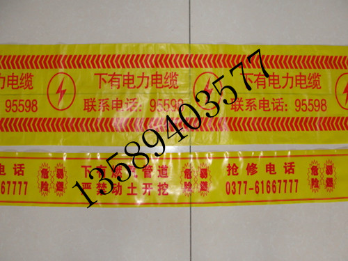 電力地下電纜警示帶,光纜警示帶,自來(lái)水警示帶,警示帶又稱標(biāo)記帶廣泛地應(yīng)用于各種直埋式燃?xì)夤艿、輸油管道、城市給排水等氣、液管道輸送系統(tǒng)、電力電